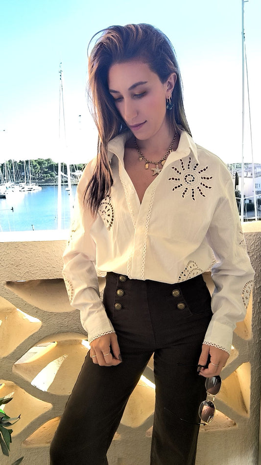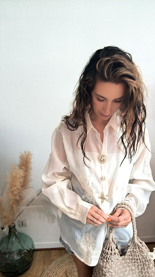 ๐ด Chemise Palma โ Broderies perlรฉes & coton ultra doux (Plusieurs coloris disponibles)