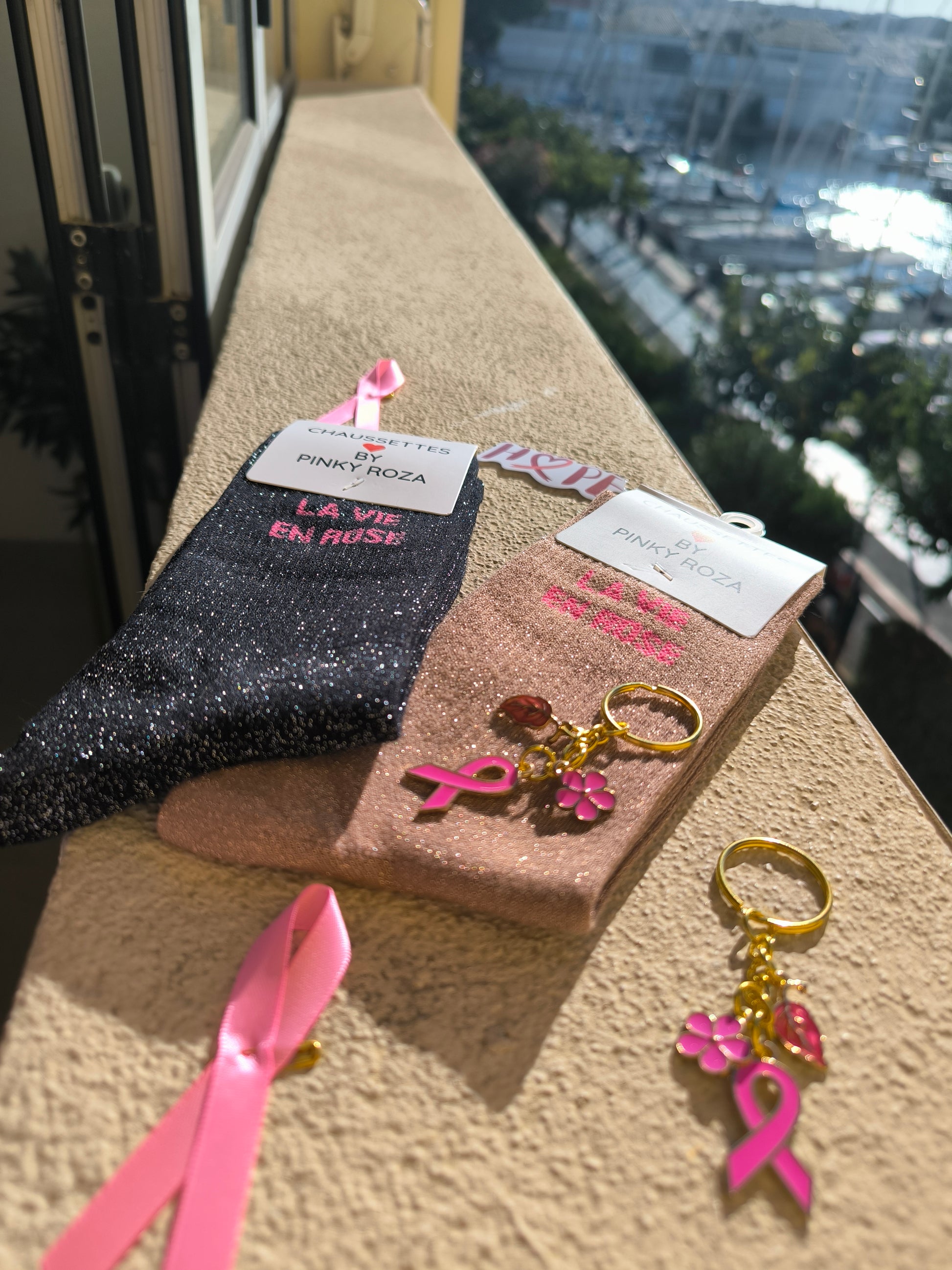 🎀 Coffret Octobre Rose – Chaussettes pailletées La vie en rose