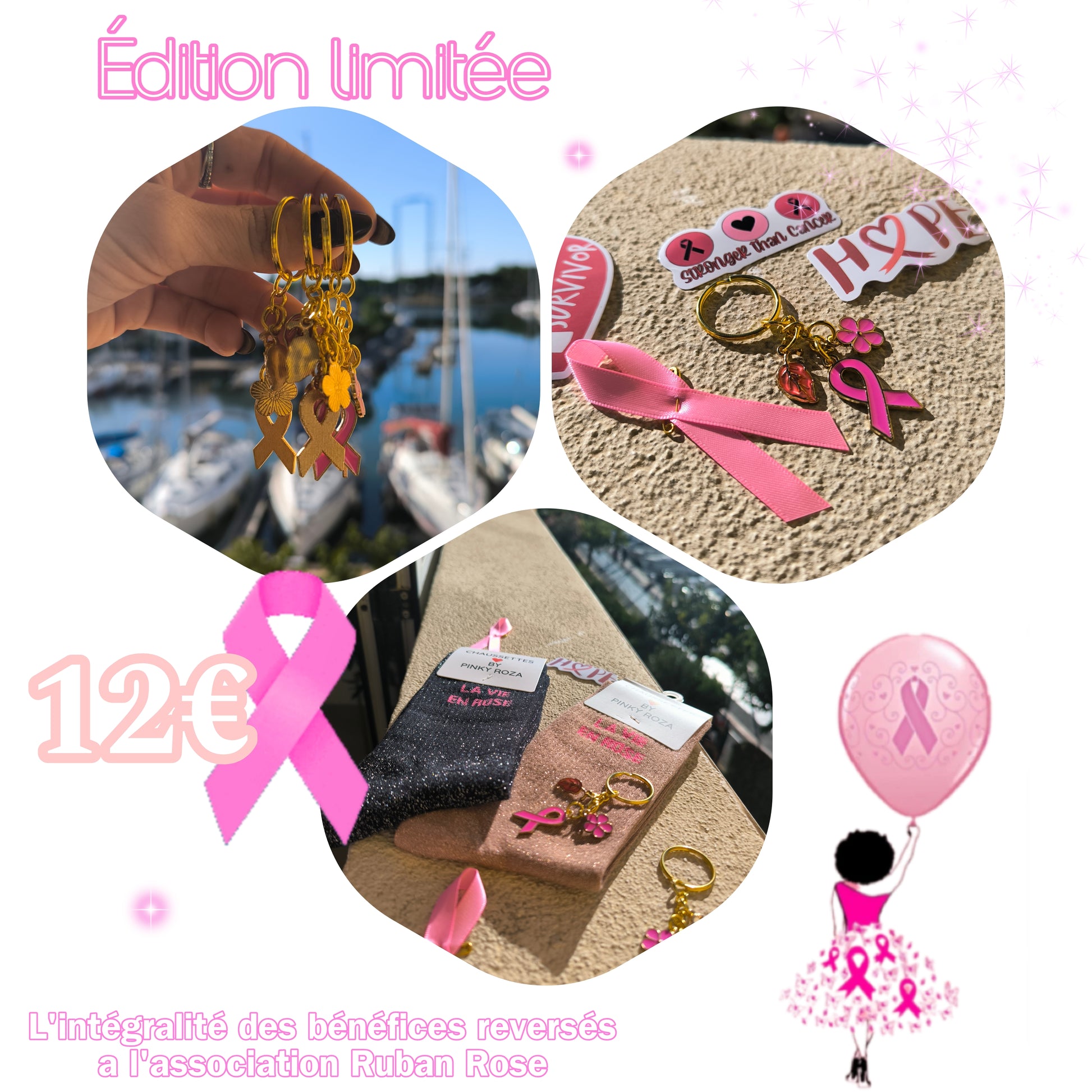 L'intégralité des bénéfices sera reversé a l'association Ruban Rose.