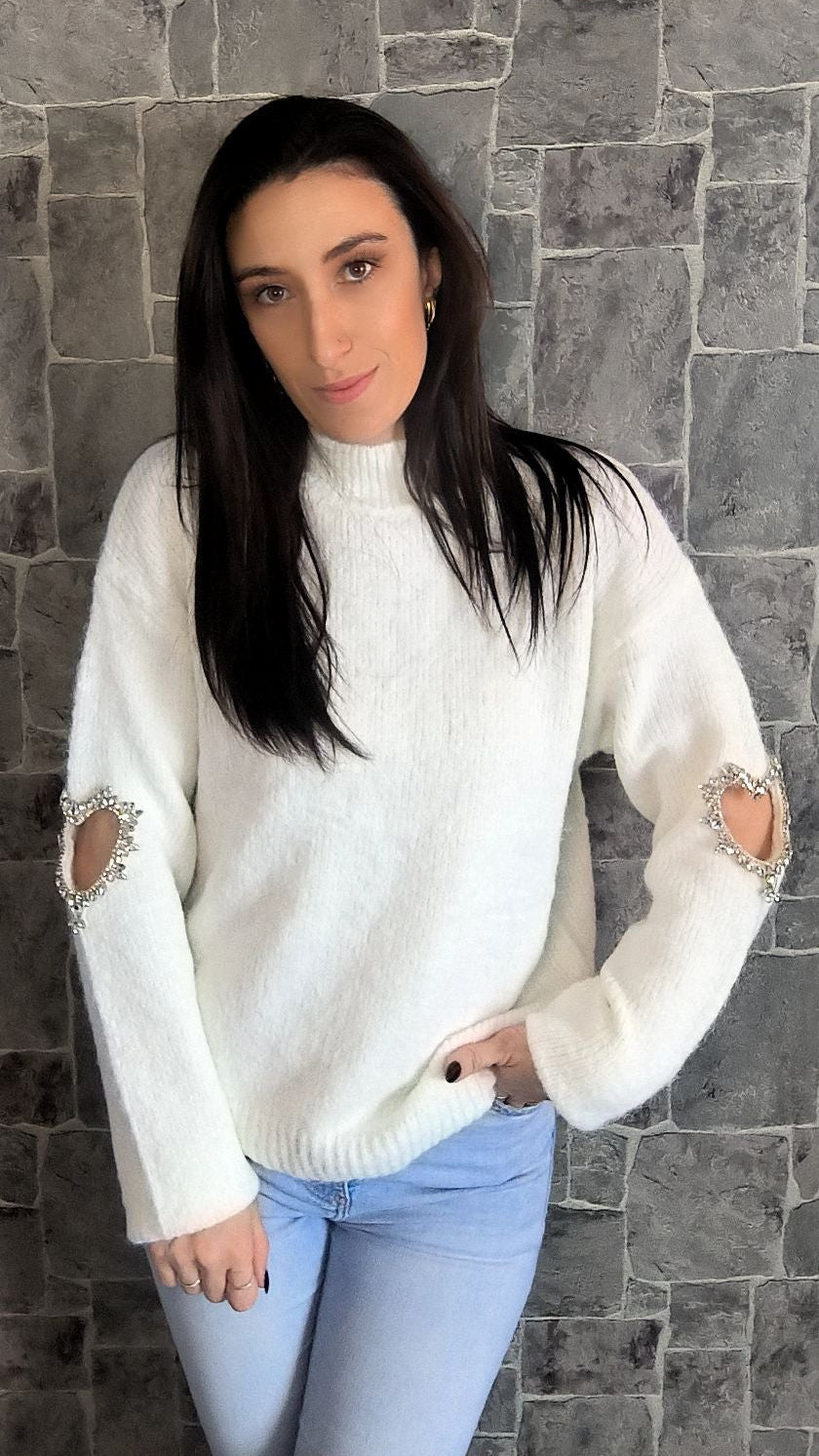Au niveau des coudes, de jolis cœurs ouverts sont décorés de petits bijoux type diamant, apportant une touche chic et raffinée.